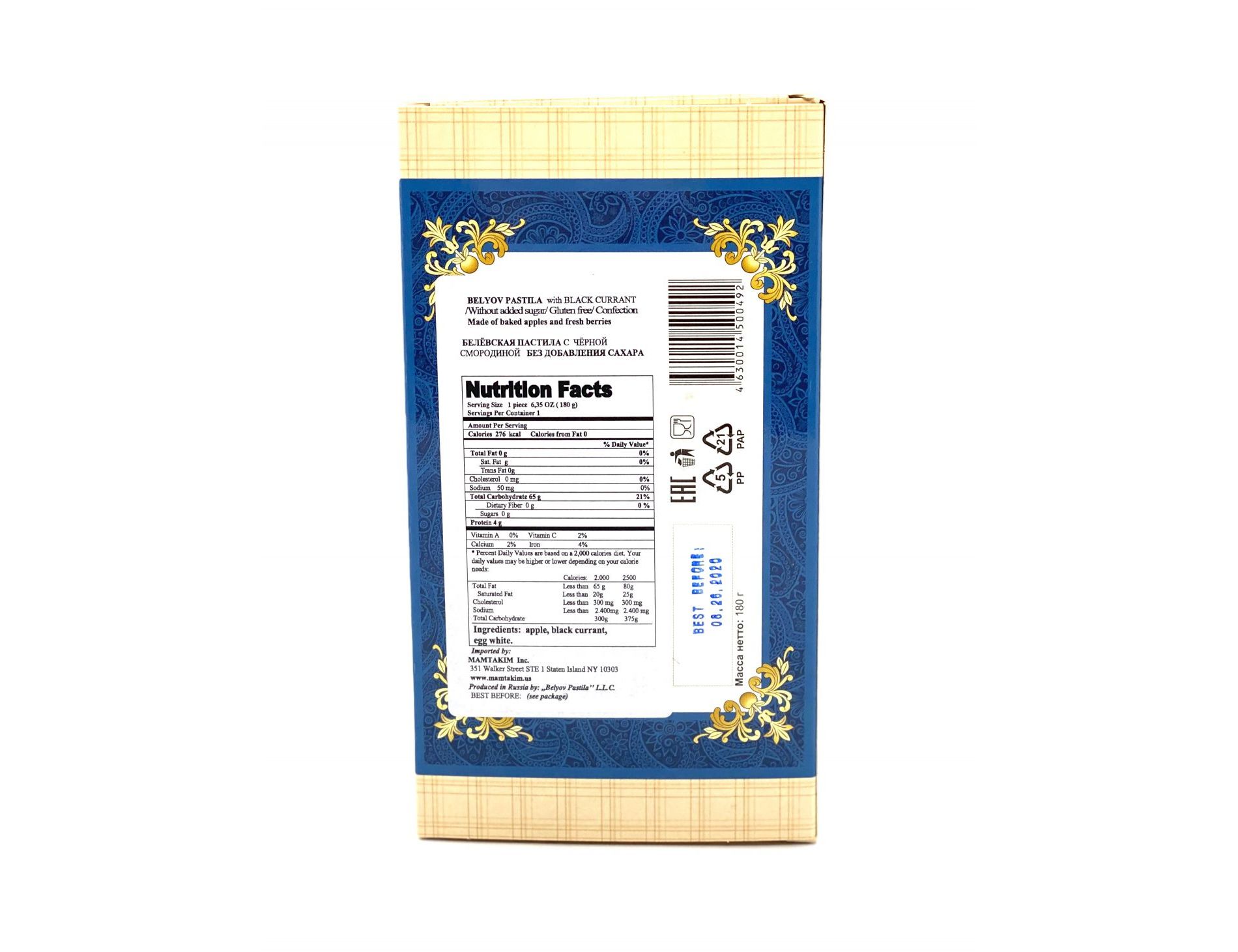 PASTILA WITH BLACK CURRANT WITHOUT ADDED SUGAR 180g